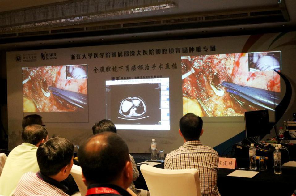 會(huì)議期間,我公司通力協(xié)作浙江大學(xué)醫(yī)學(xué)院附屬邵逸夫醫(yī)院舉行腹腔鏡胃腸腫瘤專場會(huì)議─全腹腔鏡下胃癌根治手術(shù)直播,來自全國的業(yè)界同道在此面對面交流臨床經(jīng)驗(yàn),共同分享新理論、新知識(shí)、新技術(shù)、新方法,直播現(xiàn)場一席難求,氣氛熱烈。