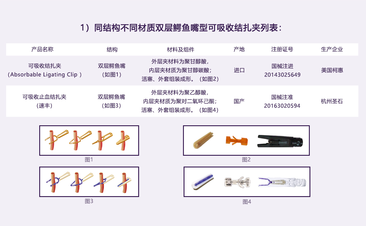 內(nèi)層夾用醫(yī)用染色劑,與進(jìn)口單層V型可吸收夾顏色一致,提高其可視性。